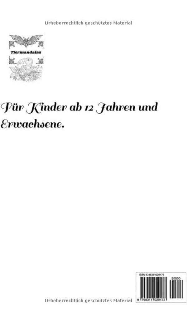 Ein Malbuch sowohl für Kinder als auch für Erwachsene mit wunderschönen tiermandalas.
